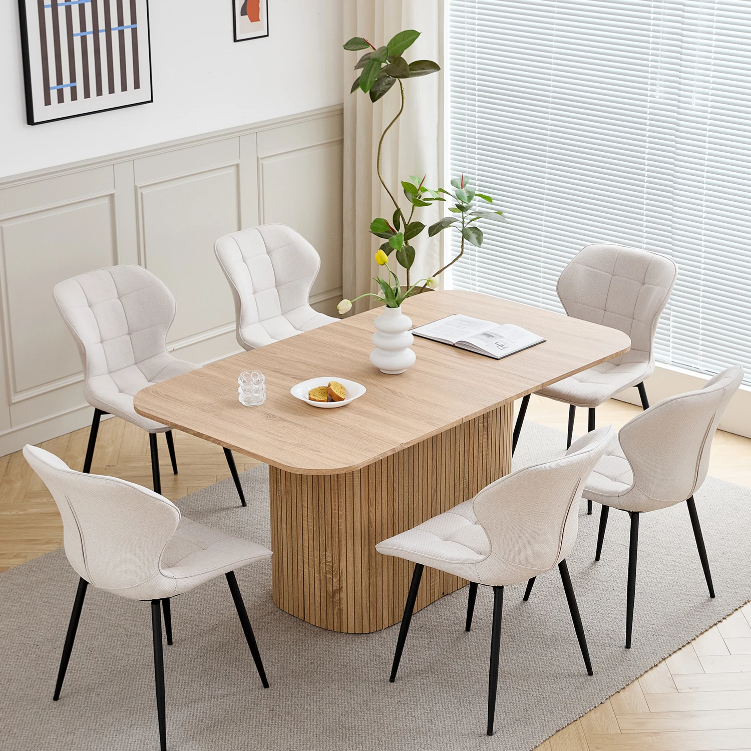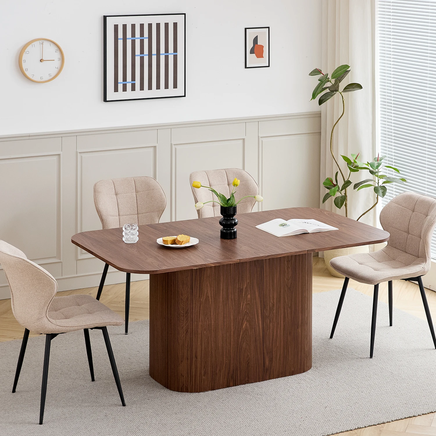 Oval MDF dining table with a wood-look finish, 160 × 90 cm, seating 4–6 people. Sturdy, low-maintenance, and versatile for dining or working.