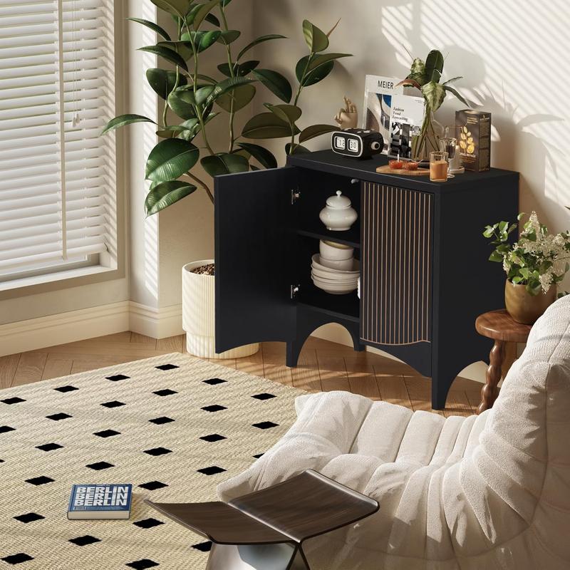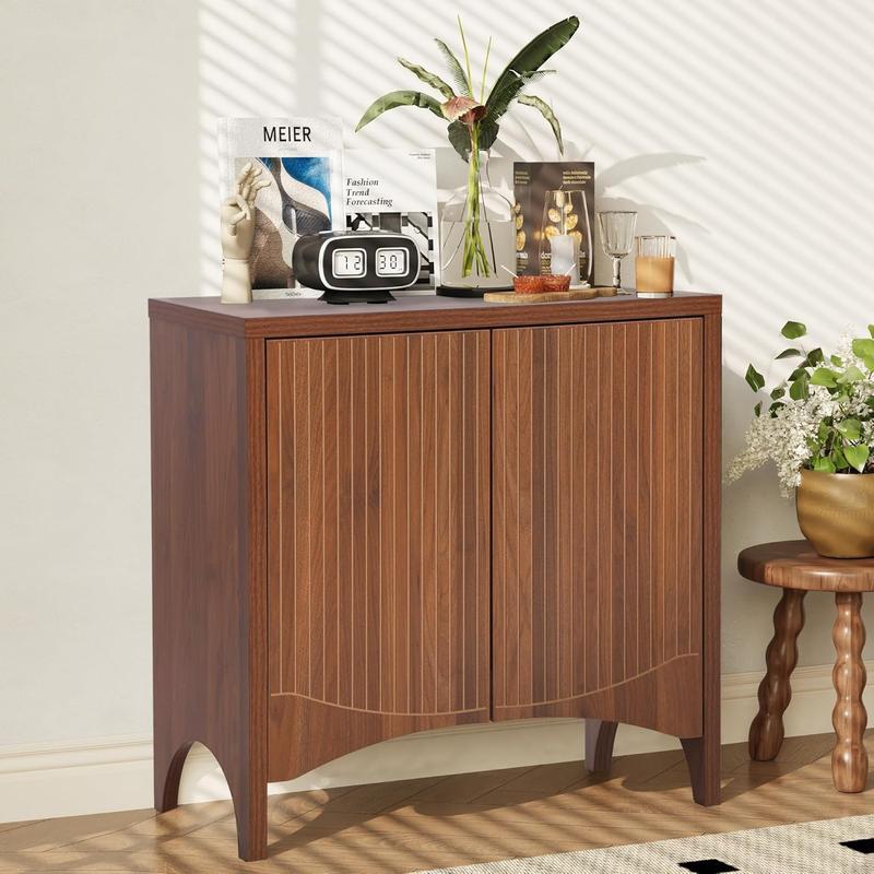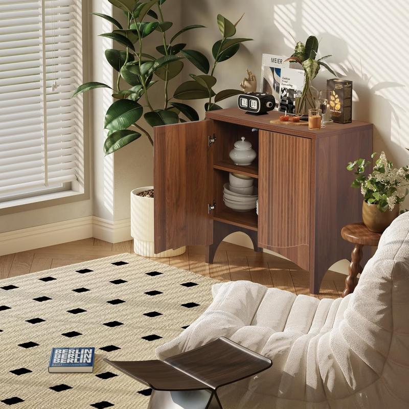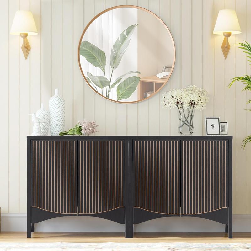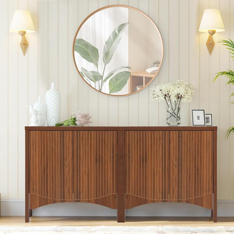 Elevate your home with this stylish buffet cabinet featuring a unique fluted design and retro carved arc doors, perfect for mid-century modern or contemporary spaces.