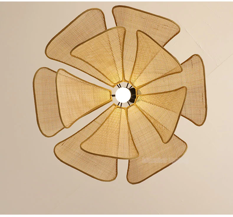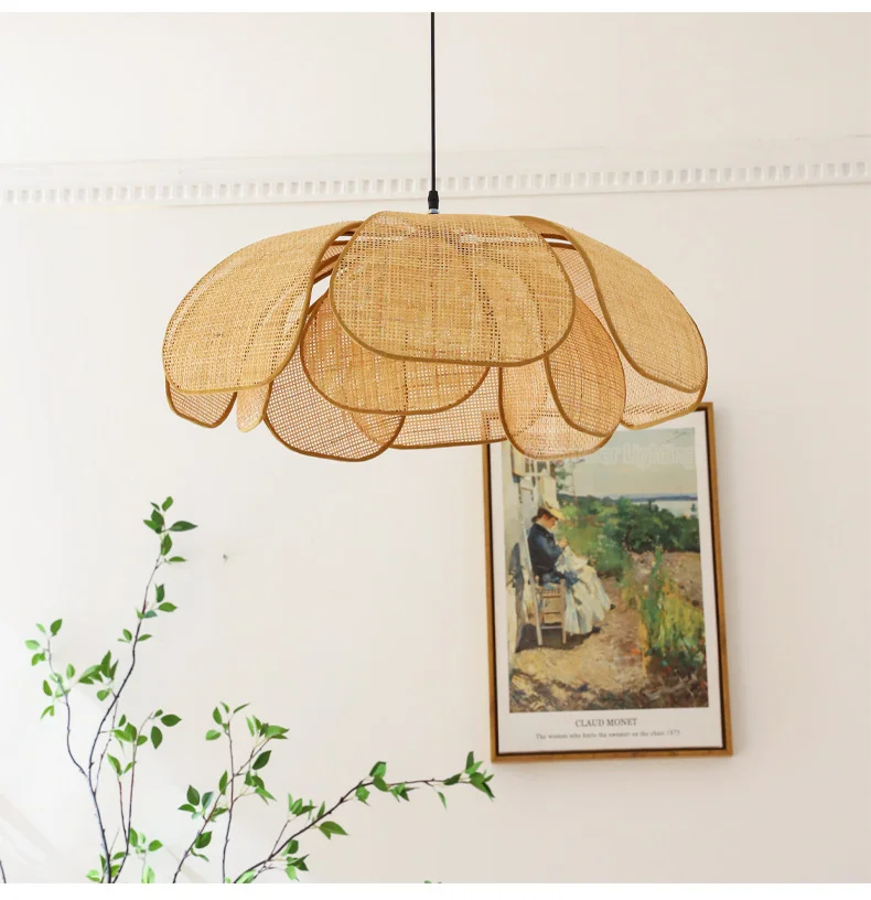 Add a touch of Southeast Asian charm to your space with this rattan weaving chandelier, featuring a floral petal design perfect for living rooms, dining areas, bars, or restaurants.
